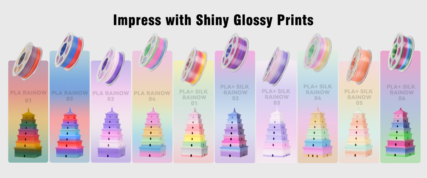 Unleash Creativity with Vibrant ColorsExplore boundless creativity with SUNLU's PLA Rainbow and Silk Rainbow filaments. Boasting a wide, vibrant, and high-purity color range, they ensure a seamless, vivid color experience.