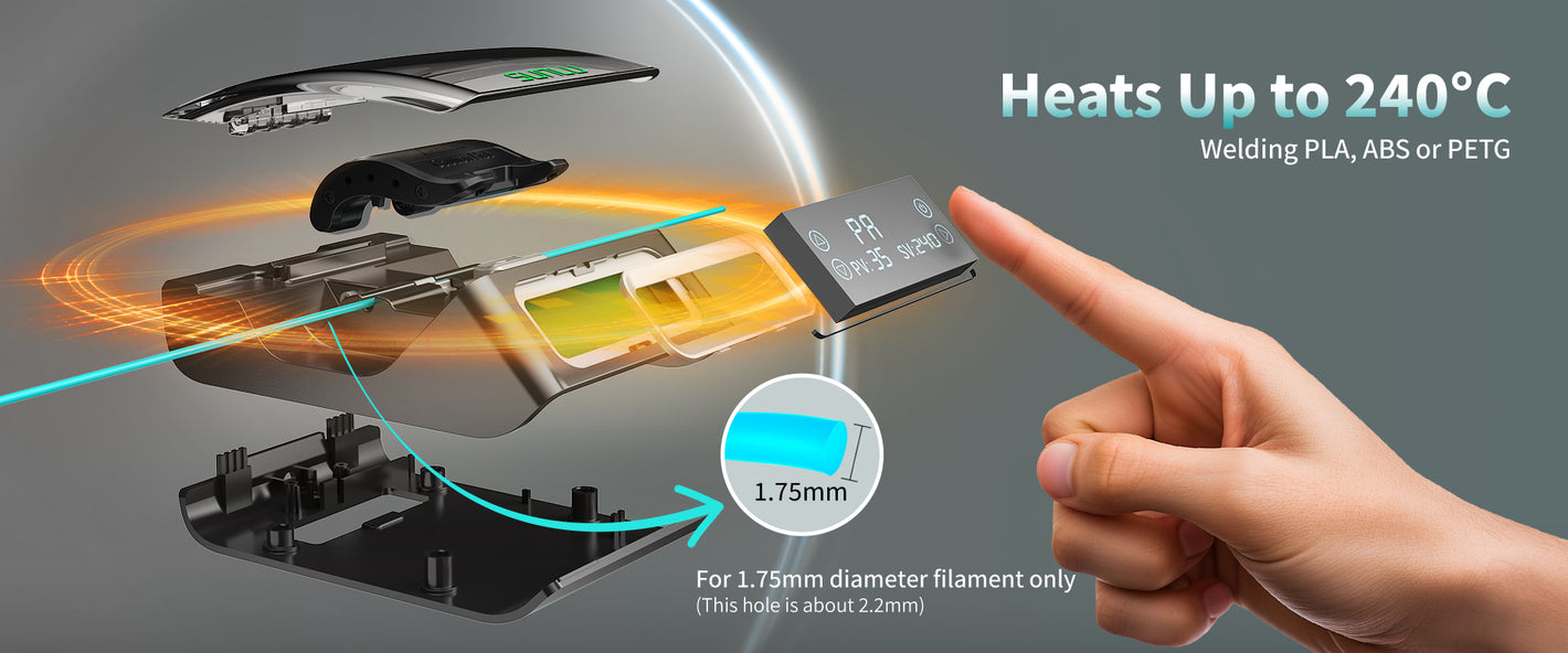 [Easy Operation] User-friendly design with a simple, intuitive interface. Power adapter not included. Use at least a 5V 2A adapter to avoid power-on issues. Select the appropriate settings based on the filament type, and follow detailed instructions and video tutorials. Perfect for beginners, with no complicated adjustments needed. Fusion completes in 10-15 seconds. (In order to quarantee a good connection. it is