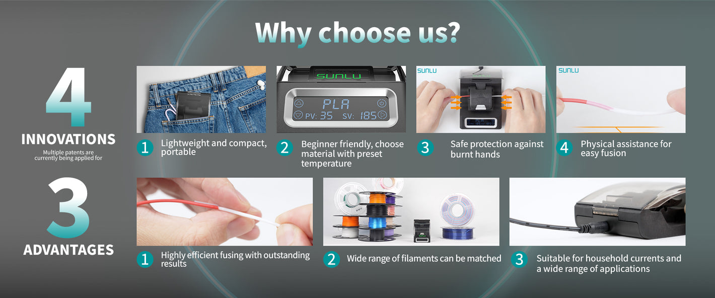 [15% OFF | 7 Day Flash Sale] SUNLU Filament Connector FC01, Fusion Splicer, weldable to 1.75mm PLA, ABS, PETG, PCL, PA and PC Filament