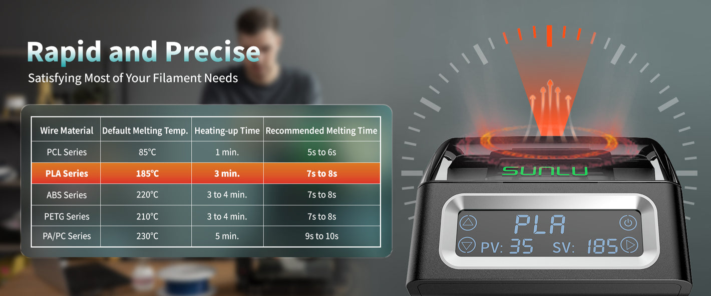 [Quick and Accurate Heating] SUNLU Filament Connector FC01 rapidly heats up to 185°C in about 3 minutes, improving efficiency and saving time. Temperature accuracy within ±3°C ensures reliable and consistent operation for a stable and efficient experience.