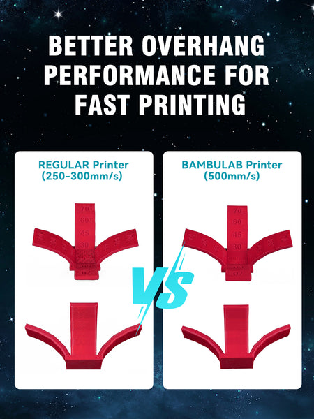 [More time and energy saving] 0~100mm/s normal speed print quality is better than PLA, the surface is smoother, the overhang performance is better, the overhang angle is less than 70° can not be added support, greatly saving printing time and material waste.