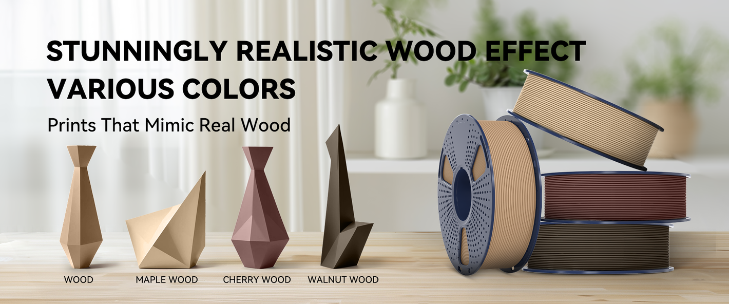 [15% Real Wood Powder] Contains 15% wood powder, delivering a natural wood scent during printing and results that closely resemble real wood.