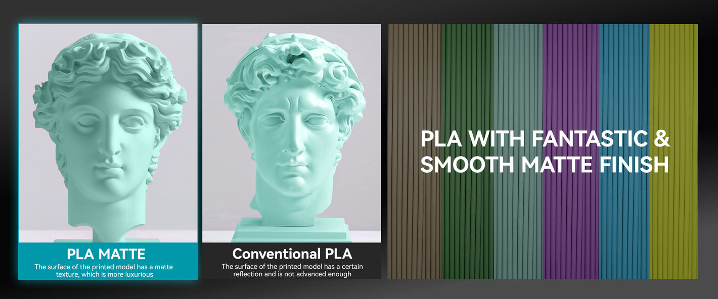 PLA Meta is an upgraded version of PLA, with lower printing temperature, better toughness and softer colors.
