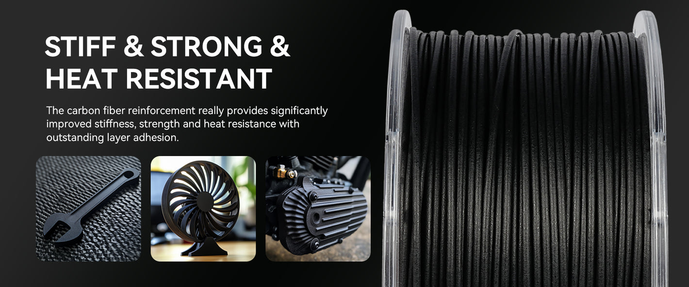 [Superior Heat Resistance] With a heat distortion temperature of up to 209°C, significantly higher than Easy PA, PC, or ASA, PA6-CF is ideal for high-temperature applications like automotive exhaust pipes, motor covers, pot handles, and kettle bases.
