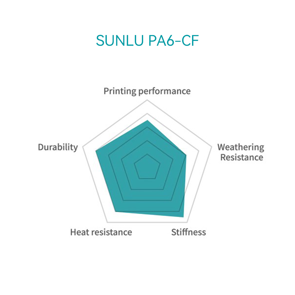 [High Strength & Heat Resistance] SUNLU PA6-CF nylon filament combines 80% PA with 20% carbon fiber, delivering remarkable stiffness, strength, and heat resistance. It offers excellent layer adhesion, making it ideal for demanding applications.